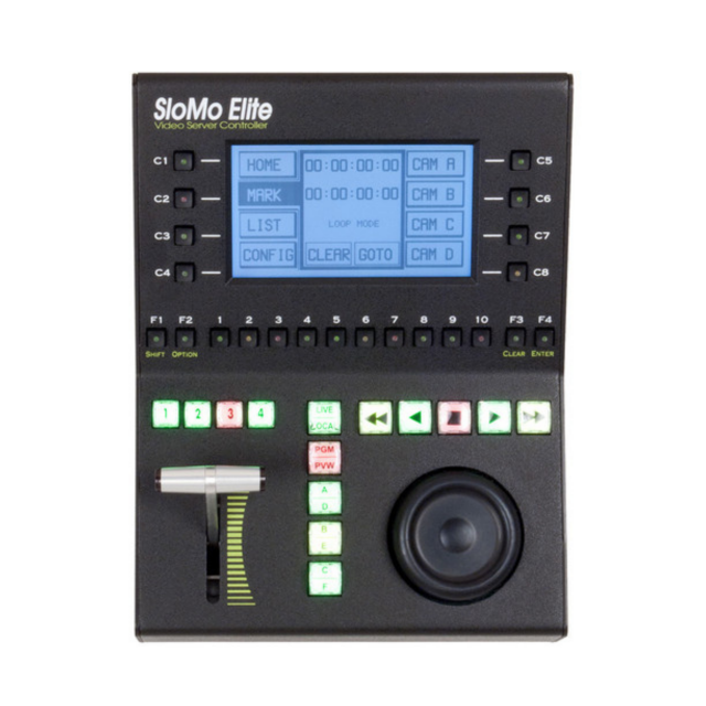 The SloMo Elite-C Controller from JLCooper is a video server controller with both Ethernet and USB 2.0 interfaces. This compact version is 33% smaller than the SloMo Elite control surface and is geared towards software and OEM developers. The SloMo Elite-C controller is designed for slow-motion applications such as sports, broadcast, scoreboard, and instant replay. It features a 10-bit Hall effect T-Bar, an electromagnetic jog wheel, and a 4.5 x 2.5" backlit graphic display. Up to four video servers or drives can be controlled simultaneously.