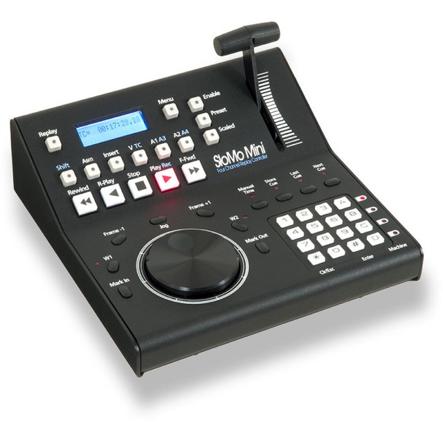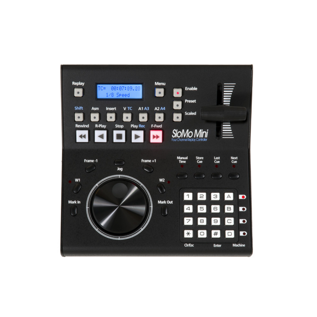 The SloMo Mini USB 4-Channel Instant Replay Controller from JLCooper can be used for controlling applications that support the ES-SloMo J USB like Dalet Brio and vMIX.