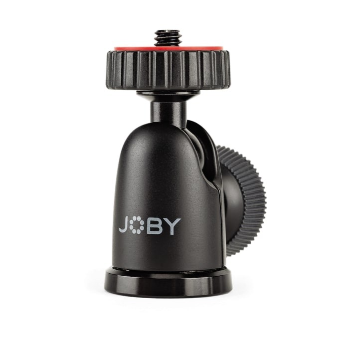 The BallHead 1K ball head from Joby supports devices weighing up to 1 kg and uses a standard 1/4"-20 threaded screw for mounting compatible mirrorless cameras, flashes, and lights.