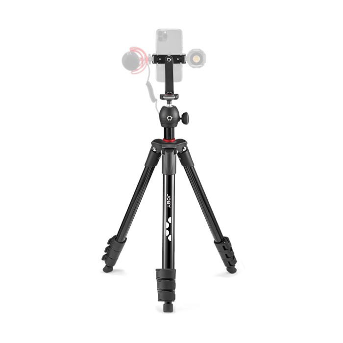 The Joby Compact Light Kit is a versatile tripod solution designed for smartphones, cameras, and content creation accessories. Featuring an integrated ball head with a 1.5 kg load capacity, a rotating phone holder with dual cold-shoe mounts, and secure leg locks, it provides a stable and flexible setup for photography, video, and social media content.