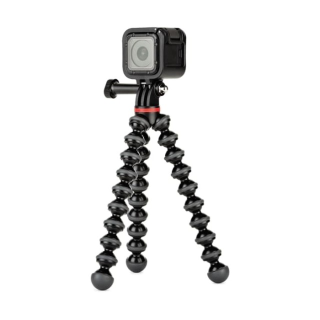 Capture dynamic footage anywhere with the Joby GorillaPod 500 Action Black/Charcoal, a versatile flexible mini-tripod designed for action cameras, small 360° cameras, and GoPro-style devices. Its multi-jointed legs allow it to wrap around objects, secure onto uneven surfaces, or stand firmly on flat terrain, providing stability in a wide range of shooting scenarios.