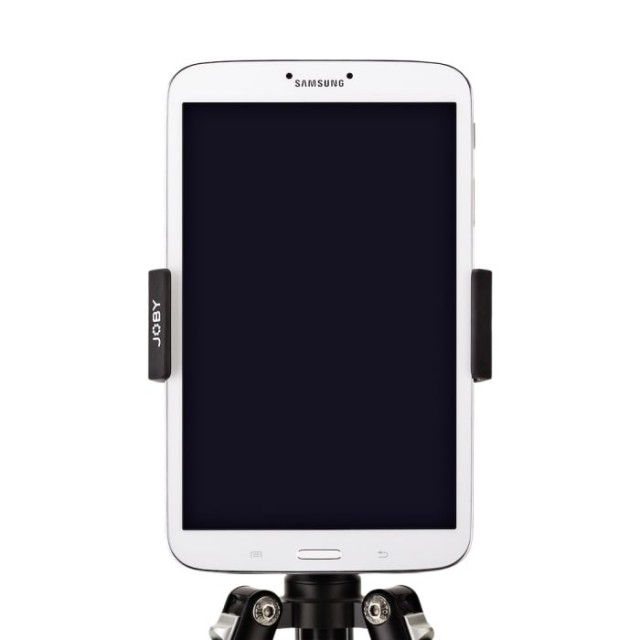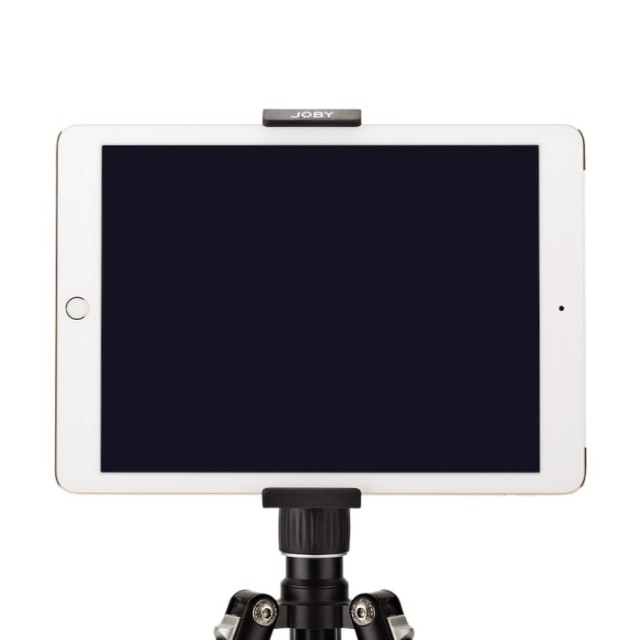 The Joby GripTight Mount PRO Tablet is a premium tablet holder designed for tablets 12.8–19.2 cm wide and up to 12 mm thick. Made from durable ABS plastic, TPE, and stainless steel, it features 180° tilt for glare-free viewing and attaches to GorillaPods or any standard tripod via a 1/4" thread.