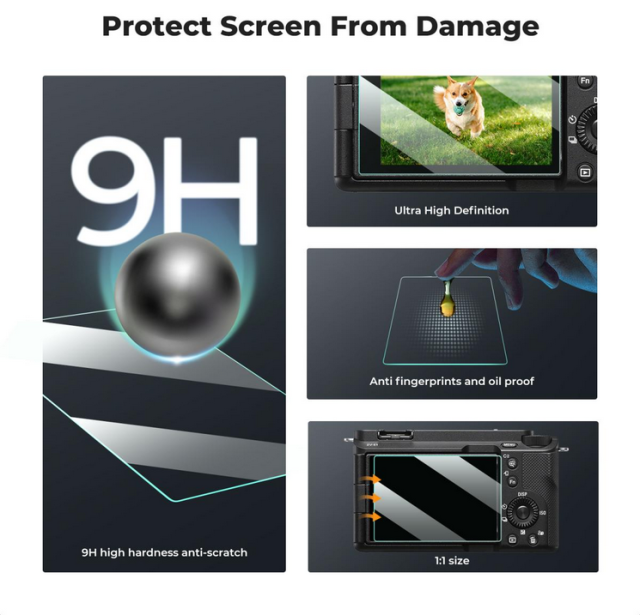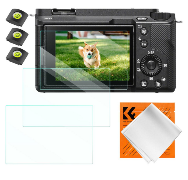 The K&F Camera Protection Kit includes 3 screen protectors, 3 hot shoe covers, and a vacuum cleaning cloth, designed specifically for the Sony ZV-E1, A7 IV, A6700, and A7CII cameras. The kit ensures comprehensive protection for your camera’s display and hot shoe area, with easy installation and superior durability.