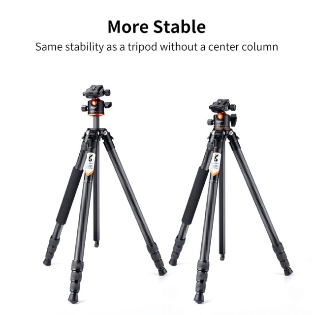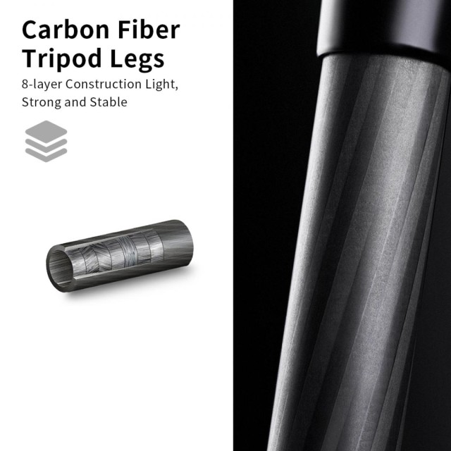 Wide height range from 21.3"/54cm to 68.9"/175cm making the carbon fiber tripod flexible for wide shooting situations. It can be turned into a monopod, providing another easy way to shoot.