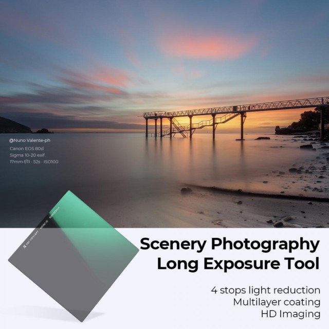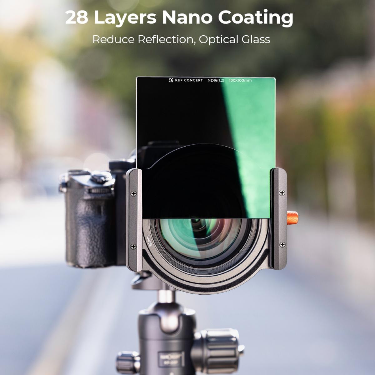 The K&F Concept 100×100×2mm Nano-X ND16 Square Filter provides a high-quality 4-stop light reduction for smoother long exposures and improved image control in bright environments. Made from premium AGC optical glass with a double-sided 28-layer nano coating, it minimizes reflections, resists water, oil, and scratches, and delivers sharp, high-definition results—even when using telephoto lenses. Ideal for landscape photography, this durable filter ensures clean, balanced exposures with professional clarity.