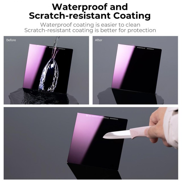 The K&F Concept 100×100×2mm Nano-X ND32000 Square Filter delivers an ultra-strong 15-stop light reduction, enabling extremely long exposures even under intense daylight. Crafted from premium AGC optical glass with a double-sided 28-layer nano coating, it minimizes reflections, enhances image clarity, and provides durable protection against water, oil, scratches, and mildew—making it the ideal tool for creating dramatic, fine-art long-exposure photography.