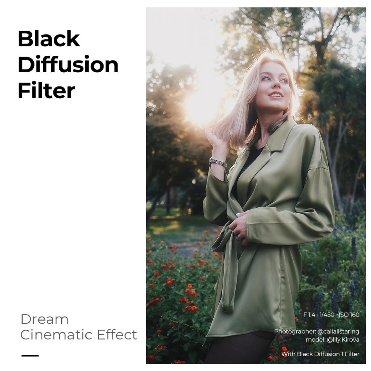 The K&F Concept 100×100×2mm Black Mist 1/1 Square Filter is designed for filmmakers and photographers seeking a dreamy, atmospheric visual style. Its strong diffusion effect softens wrinkles, freckles, pores, and harsh details, rendering skin more flattering while blooming highlights for a cinematic look. Perfect for portraits, storytelling visuals, and creative video scenes, this Black Mist 1/1 filter enhances mood without sacrificing image sharpness.