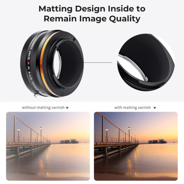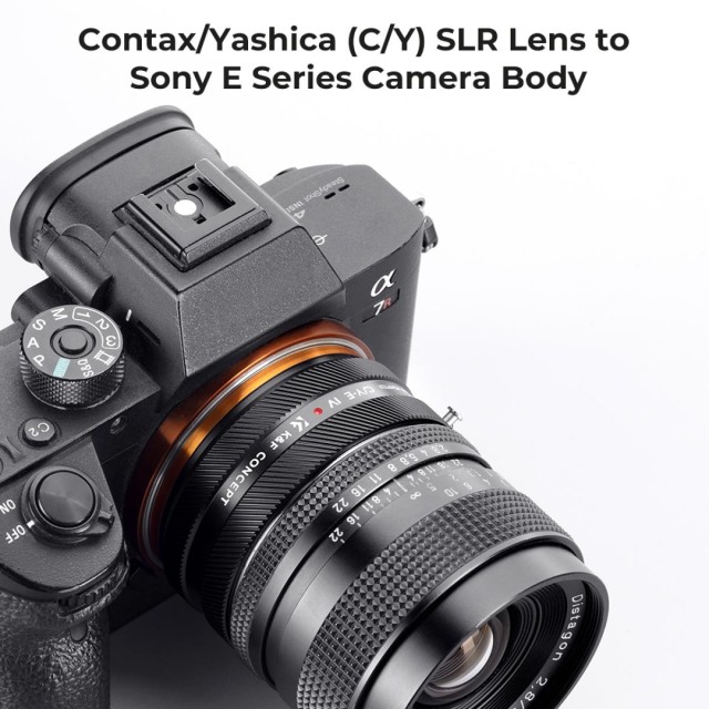 The K&F Concept C/Y-E manual focus adapter is compatible withContax/Yashica (C/Y) lenses for Sony E-mount cameras.