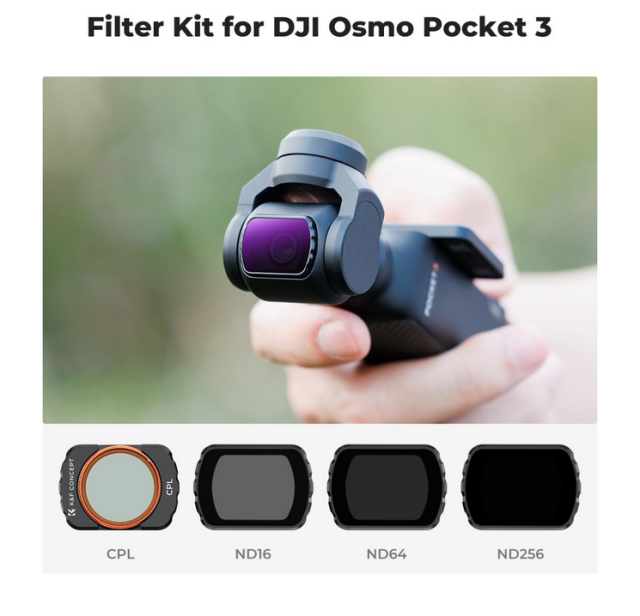 The K&F 4pcs Filter Kit for DJI Osmo Pocket 3 is designed to enhance your photography and videography experience with high-definition filters. This kit includes CPL, ND16, ND64, and ND256 filters, featuring quick magnetic installation and full gimbal compatibility. Perfect for various bright sunlight conditions and daily vlogging, these filters provide…