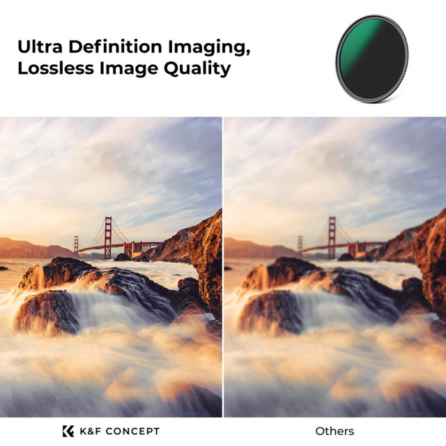 The K&F 52MM 3-piece Professional Lens Filter Kit is ideal for photographers seeking precise control over light in a variety of shooting conditions. The set includes ND8 (3-stop), ND64 (6-stop), and ND1000 (10-stop) filters, perfect for portraits, landscapes, long-exposure shots, and variable lighting situations. Each filter is crafted from premium Japanese optical glass with double-sided polishing for exceptional image sharpness, reduced reflections, and minimized stray light. The 24-layer nano coating ensures color neutrality, eliminates ghosting, and offers waterproof and oil-proof protection. The CNC trapezoid aluminum frame provides extra friction for secure and easy installation or removal. Compact and portable, the kit comes with a waterproof pouch with separate compartments to prevent scratches, along with three individually packaged cleaning cloths for convenience on the go. This all-in-one filter kit is essential for professional and enthusiast photographers alike.