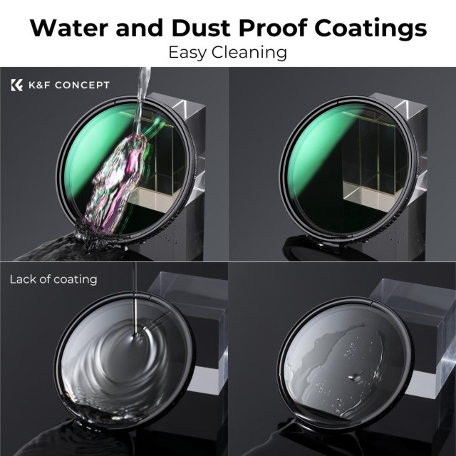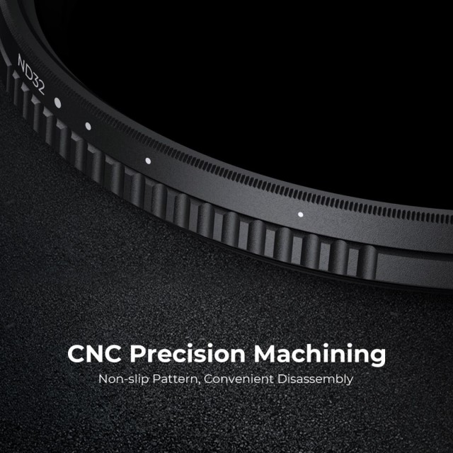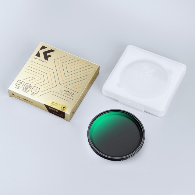 K&F Concept ND2-ND32 variable filter is intended for long exposure and motion blur techniques in changing light. Reduces light intake from 1 to 5 stops without affecting color balance, suitable for mid-day or mild sun conditions. his ND2-ND32 variable filter, of K&F Concept Nano-Dazzle series, is made by HD AGC optical glass, a total of 24 multi-layer coatings help repel water and dust, effectively reducing reflection from the filter itself and glare.The surface of the lens is oxidized and sandblasted to effectively prevent stray light from entering and slow down the reflection of the metal surface.