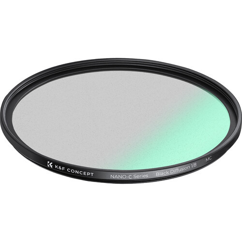 The K&F Concept C-Series Black Diffusion Filter (55mm, Grade 1/8) is a circular filter from the Classic Series, designed to soften light and create a subtle, dreamy effect, enhancing portraits and video with a cinematic touch.