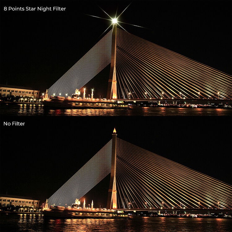 Add cinematic sparkle to your nightscapes and portraits with the K&F Concept 55mm Nano-C Series Variable Star 4-8 Filter. This innovative filter transforms bright point lights—like streetlamps, stars, or reflections—into stunning 4- or 8-point starbursts with a simple rotation of its durable metal frame. Crafted from premium multicoated optical glass with a protective green coating, it minimizes flare and reflections while preserving image clarity and color fidelity. The variable design allows seamless switching between subtle 4-point stars for natural elegance and dramatic 8-point bursts for high-impact visuals, perfect for astrophotography, urban night shots, or creative bokeh effects. Ultra-slim and lightweight, it fits effortlessly on 55mm lenses without vignetting, even on wide-angles. Elevate your compositions with professional-grade light diffusion that's easy to control and built to last.