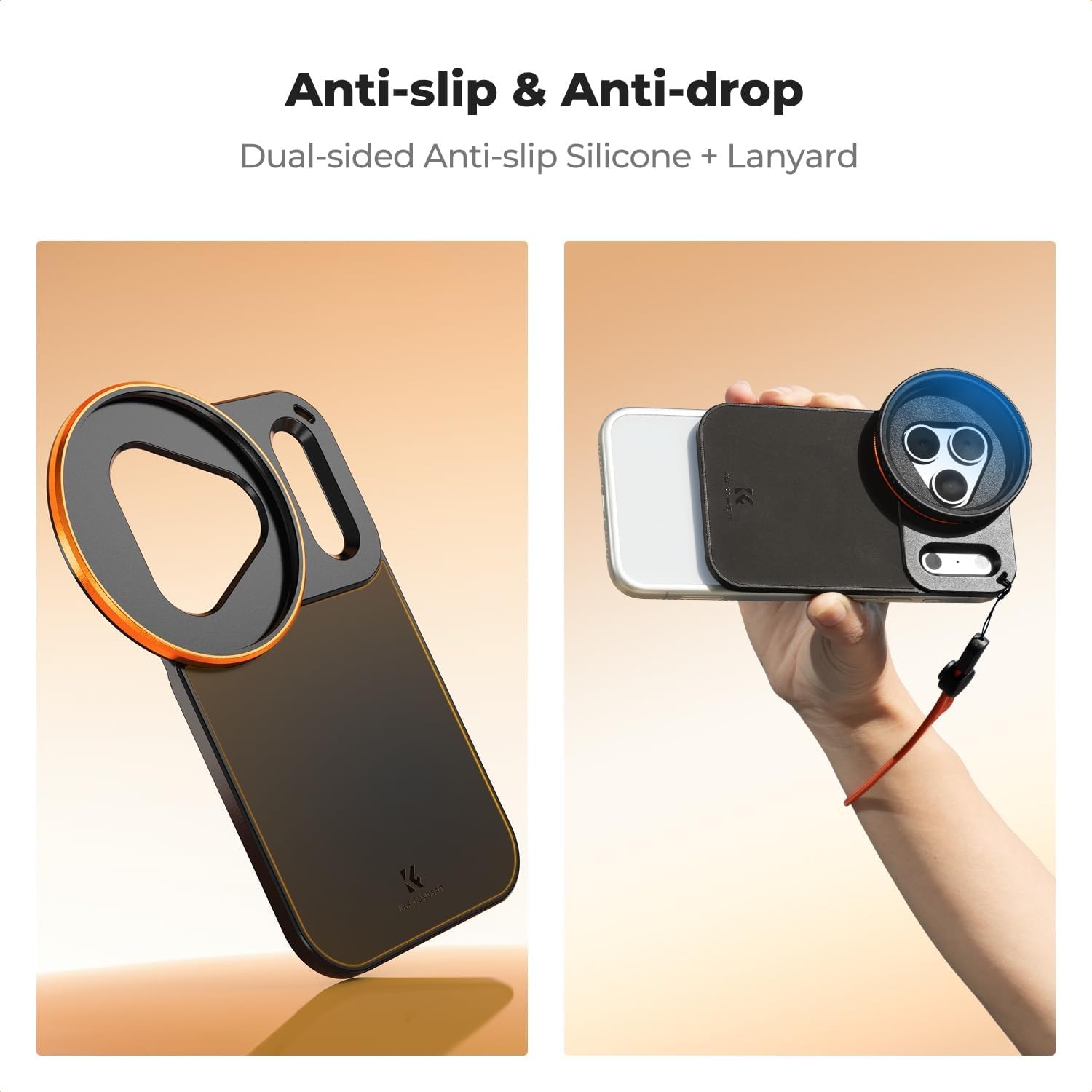 Enhance your iPhone 17 Pro Max photography with the K&F 58mm Screw-In Magsafe Double-Sided Magnetic Filter Holder. Designed specifically for the iPhone 17 Pro Max lens module, it features a triangular lens cutout and a rectangular Deco cutout that perfectly align with the body. Large flash openings and antenna hollowing prevent light leakage and signal obstruction, ensuring that your camera and flash performance remain unaffected.