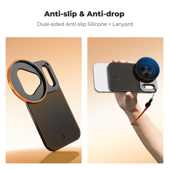 Upgrade your iPhone 17 Pro Max photography with the K&F 58mm Screw-In Magsafe Double-Sided Magnetic Filter Holder. Custom-engineered for the iPhone 17 Pro Max, its triangular lens cutout and rectangular Deco opening align perfectly with the lens module, flash, and antennas, preventing light leakage and signal interference while keeping the camera fully functional.
