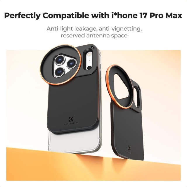 The K&F CONCEPT 58mm Double-Sided Magnetic Filter Holder is custom-designed specifically for the iPhone 17 Pro Max, offering photographers and content creators a professional-grade filter mounting solution. Precisely engineered to match the iPhone’s lens module, it features a triangular lens cutout and rectangular Deco opening, ensuring a perfect fit without affecting the camera, flash, or antenna signal. A large flash opening combined with antenna hollowing prevents light leakage and signal interference, maintaining full phone performance.