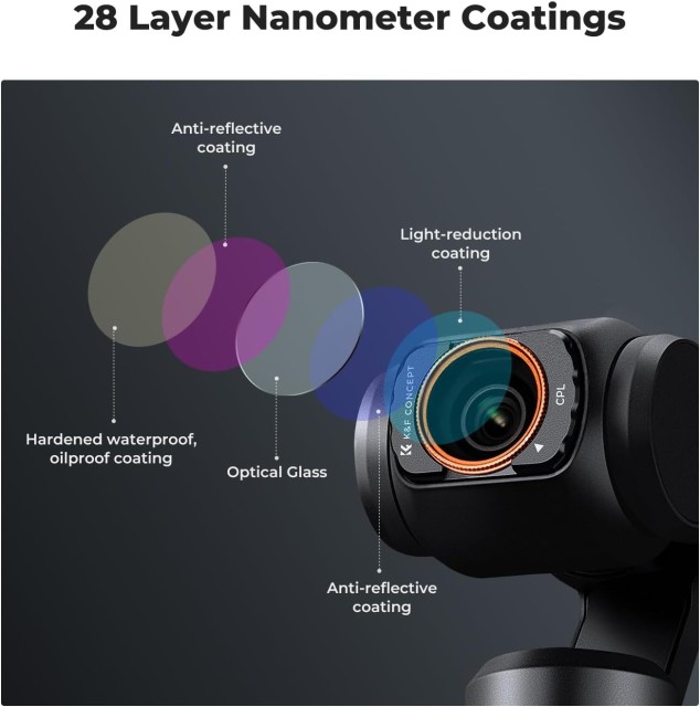 - 【28 Multi-Layer Coatings Optical Glass】Each filter made by imported AGC optical glass, with no effect on the image quality, ensures the restoration of the image's actual color. The dual side of the glass adopted multilayer coating, which helps repel water, dust, grease, and anti-scratch. Easy to clean and maintain, and protecting your Osmo pocket 3 lens from all-rounds.