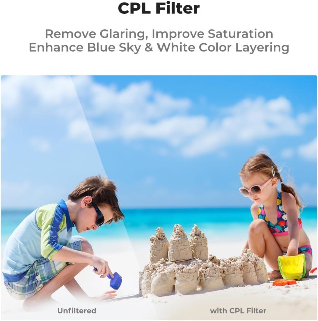 - 【UV/CPL Filter】The UV filter prevents the UV ray effect for the image, protecting the Osmo Pocket 3 lens from dust, and scratches. CPL filter can remove the non-metallic surface reflection, such as glass, and water, enhancing the color saturation and contrast for vibrant and captivating scenic images.