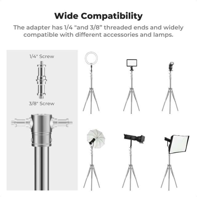 - * 【Reversible 1/4" to 3/8" Adapter】The universal screw adapter has 1/4" and 3/8 thread ends, which is compatible with different accessories and fixtures. The three-way mounting interface allows you to install in both vertical and horizontal directions.
