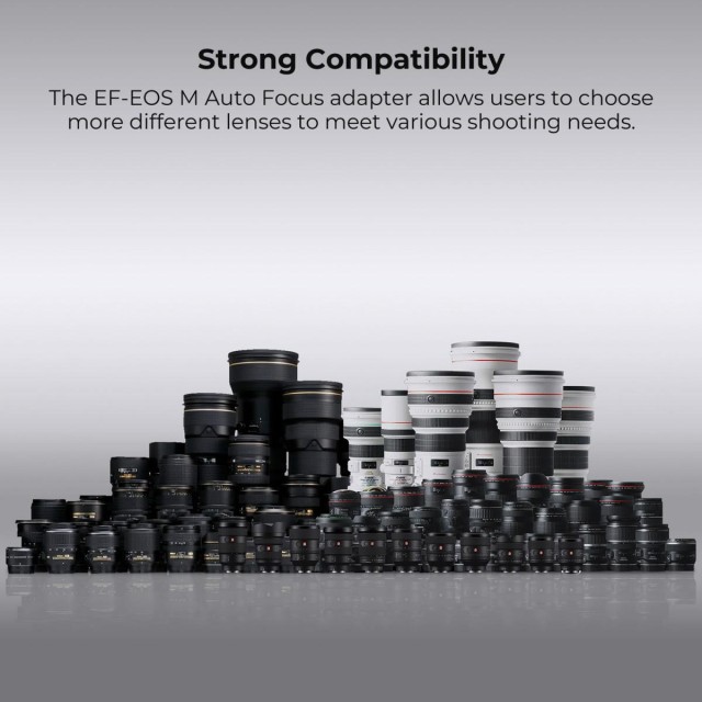 * Wide Compatibility. Suit for Canon EOS EF EF-S mount D/SLR Lenses & Canon EOSM EOSM2 EOSM3 EOSM5 EOSM6 EOSM10 EOSM50 EOSM100 EOSM50II EOSM6II EOSM200 cameras and provides EOS M camera users with a wider choice of lenses.
