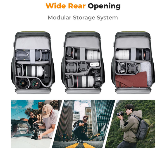 The K&F Backpack 25L Nature Wander 01 (Green) is designed for photographers who need versatility, stability, and easy access while on the go. Featuring a unique Magic Bin design, the bag allows you to adjust the internal space ratio between 5:5 and 2:8 by simply pushing up or down, adapting to your specific gear storage needs. This makes it ideal for outdoor photography, urban street photography, outdoor portraits, and VIOG photography.