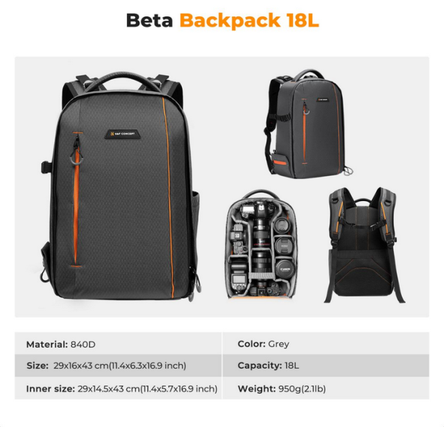 The K&F Beta Backpack 18L in Dark Grey is a lightweight, customizable camera bag designed for photographers on the go, accommodating essential gear and ensuring comfort during long shoots.
