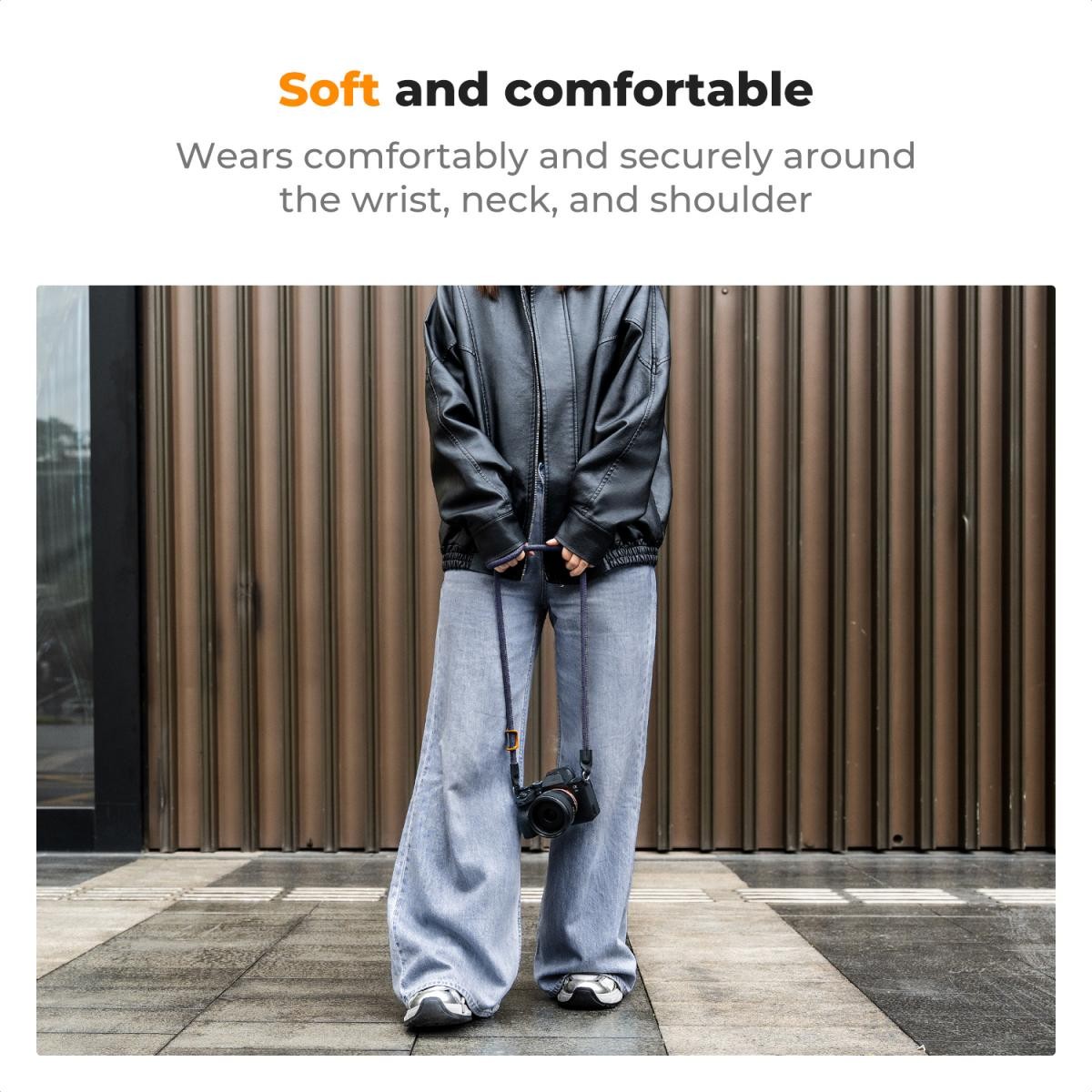 The lightweight and soft strap provides comfortable wear around the neck even during prolonged use, ideal for long photo sessions.