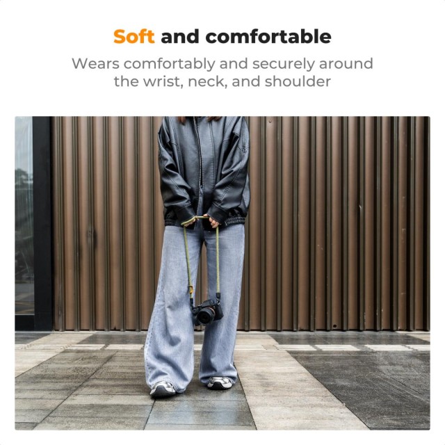 The lightweight and soft strap provides comfortable wear around the neck even during extended use, ideal for long photo sessions.