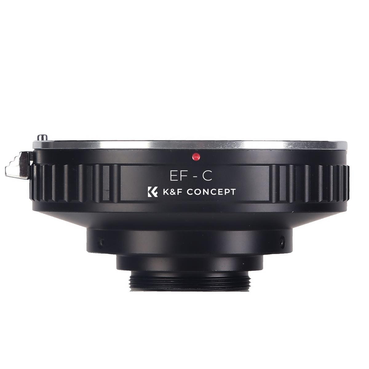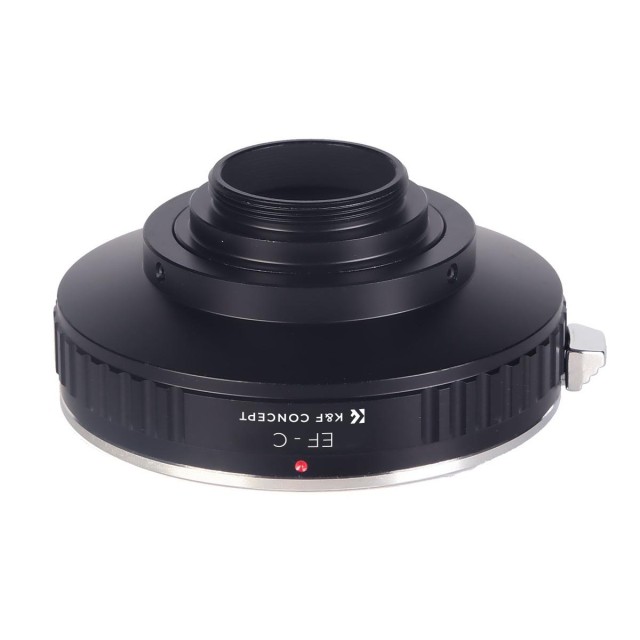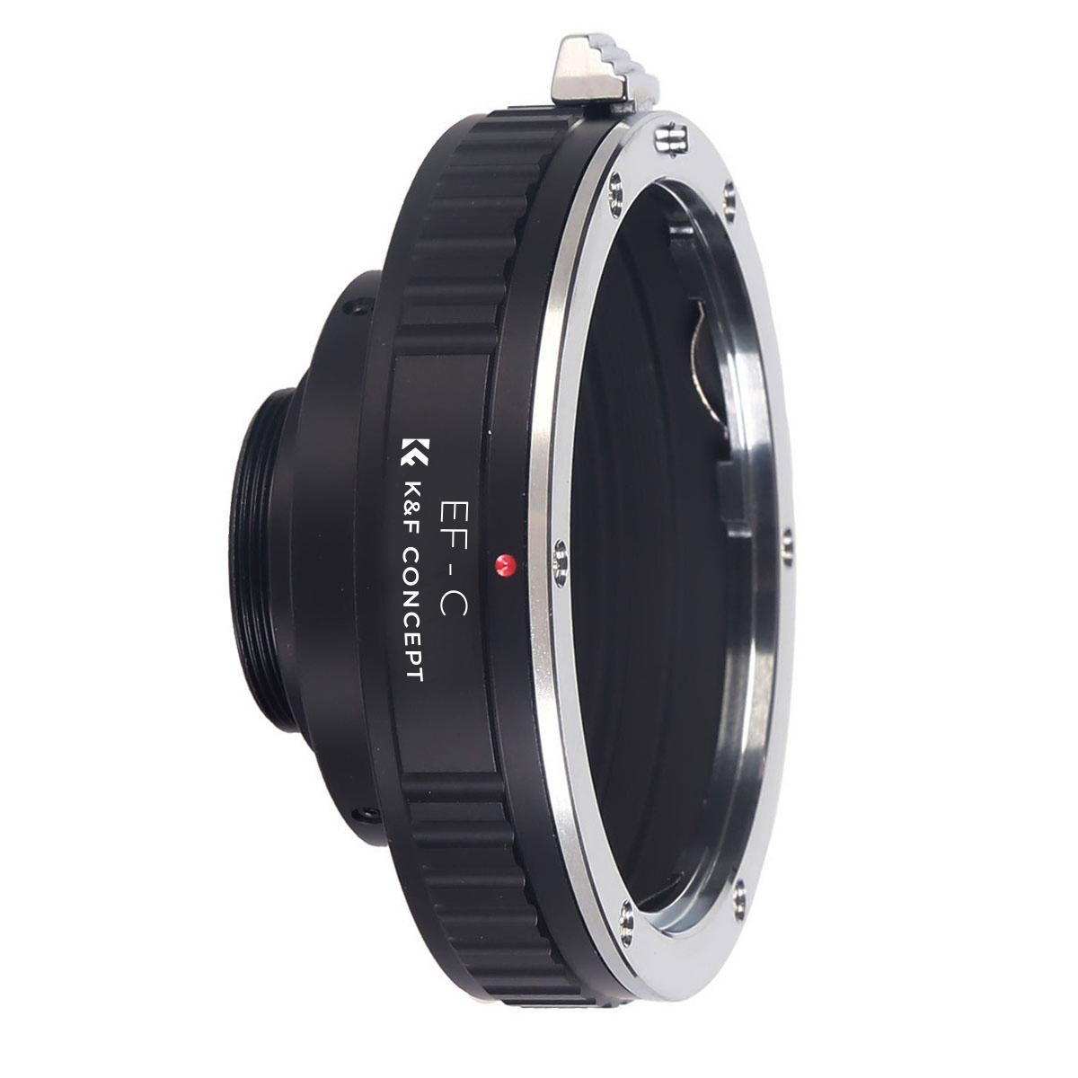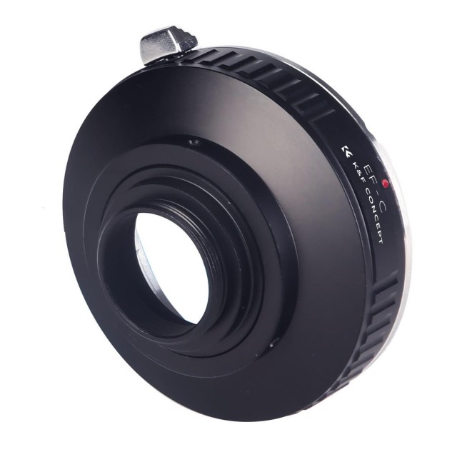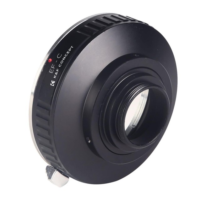 The K&F Canon EOS EF to C-Mount Adapter allows Canon EF lenses to be used on C-mount cinema cameras and camcorders, featuring durable metal construction and full manual operation.