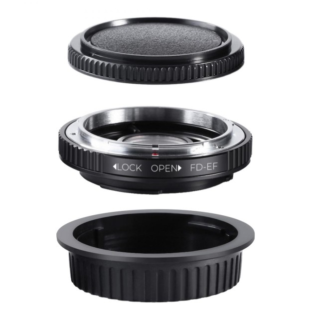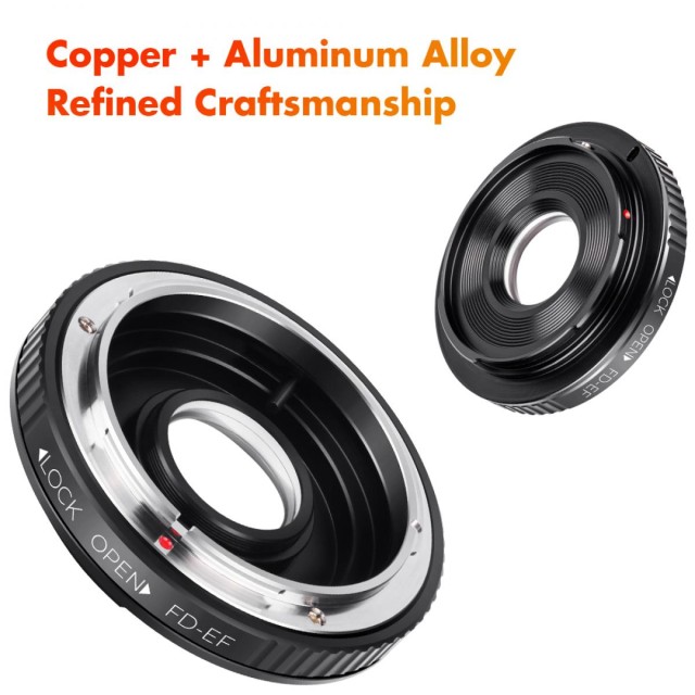 The K&F Concept Canon FD to Canon EOS Lens Mount Adapter with optic glass allows you to mount classic FD/FL lenses onto modern Canon EOS EF/EF-S DSLR cameras, offering manual control, infinity focus, and durable all-metal construction.