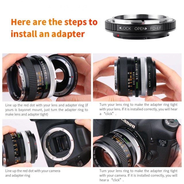 The K&F Concept Canon FD Lenses to Canon EOS Mount Camera Adapter with Optic Glass is designed for photographers who want to bring vintage Canon FD/FL lenses into the modern digital era. This precision-built adapter enables full manual operation—including manual focus, manual exposure, and infinity focus—thanks to its incorporated optical glass element. Made from high-quality, hardened anodized aluminum, it offers outstanding durability and a secure fit between lens and camera body. Compatible with a wide range of Canon EOS EF and EF-S mount DSLR cameras, such as the 1D/1Ds series, 5D series, 7D, and popular Rebel models, it opens creative possibilities by pairing legacy lenses with contemporary imaging technology. Simply verify your camera and lens mount type via your user manual or manufacturer’s website to ensure compatibility.