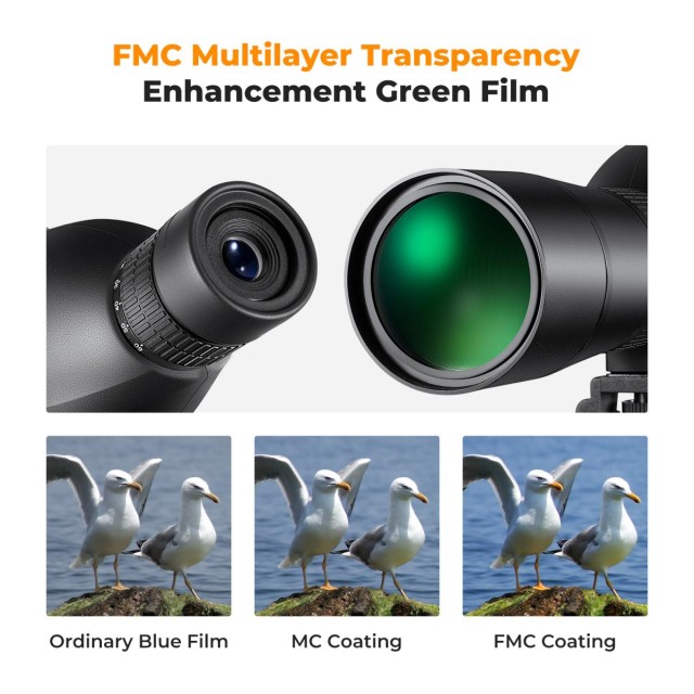 20-60x60 Spotting Scopes for Target Shooting, Waterproof Spotter Scope with Tripod & Phone Adapter, 45°Angled Eyepiece Range Scope for Bird Watching Wildlife Hunting. Powerful zoom magnification runs from 20x to 60x, with 40m-20m wide field of view, allows you to lock onto the target and zoom in for more details. 45 Degree angled eyepiece offers comfortable viewing.