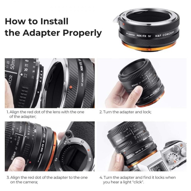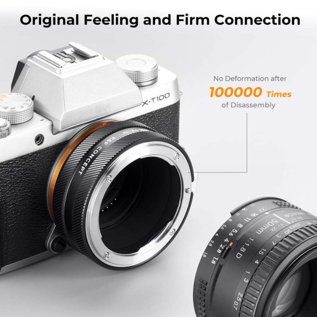 Unlock new possibilities with the Nikon F Series Lens to Fuji X Series Body Adapter Ring. Precision-manufactured from high-quality copper aluminum alloy, this adapter ensures durability and a comfortable, smooth disassembly and assembly process. With full manual control, a stable design, and slip-resistant features, it guarantees a secure fit. The red dot logo signifies precise alignment, facilitating effortless installation and removal. The joint ring and bayonet combination are tightly integrated, eliminating any potential for looseness. Elevate your photography experience with this reliable and user-friendly adapter.
