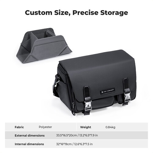 • PERFECT SIZE CAMERA BAG: External Size: 9.1 x 7.3 x 5.1 in, Internal Size: 8.3 x 6.8 x 4.3 in, weight only 0.61lb. Length of shoulder strap: 29.5 in - 52.7 in. This sling camera bag has a simple design and is stylish and versatile. Suitable for daily use, outdoor travel, commuting or short trip.