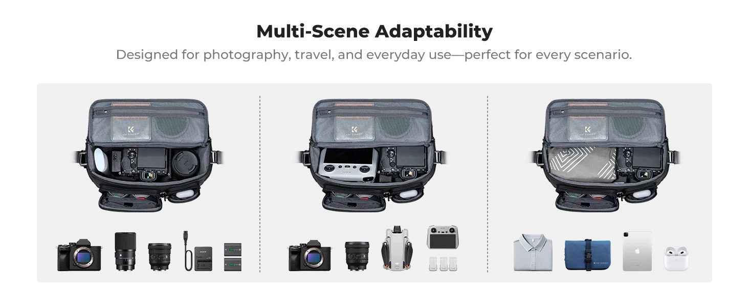 • MULTI-PURPOSE: This crossbody camera bag comes with 1 removable padded divider to for personalized storage. keep camera and others separated and protected, also enable you to customize main compartment for different size of camera equipment. After removing inner dividers, it can easily convert it from a dslr camera bag into a stylish everyday shoulder bag.