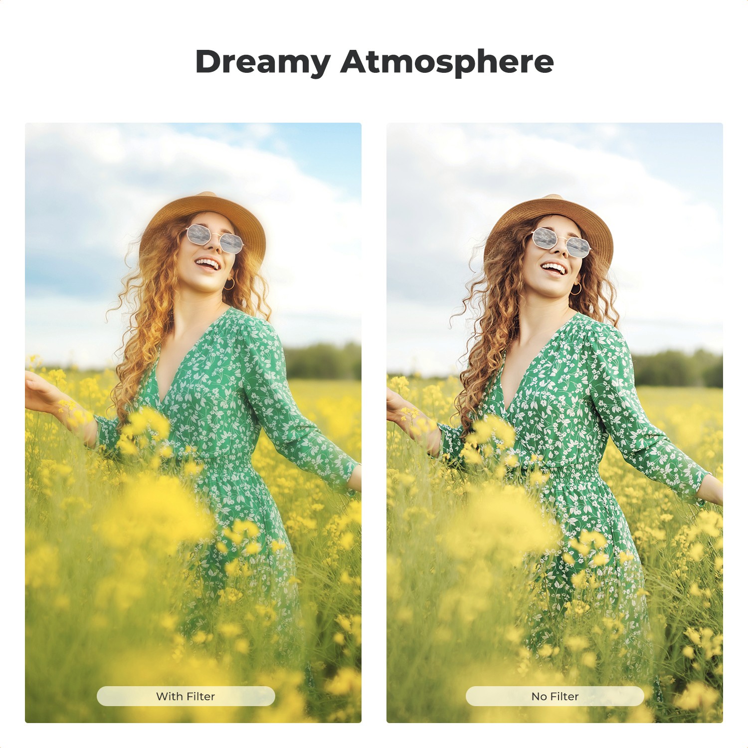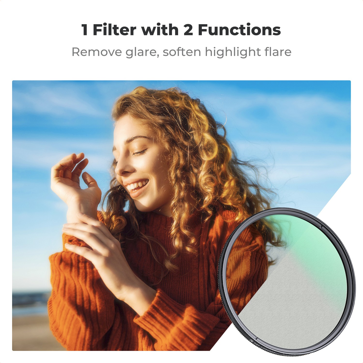 The Black Mist 1/4 diffusion layer subtly softens harsh highlights, reduces contrast, and smooths skin texture, making facial features appear more natural and pleasing. It creates a gentle glow around light sources, perfect for portraits, fashion photography, cinematic video, and night scenes. Meanwhile, the rotatable CPL filter effectively reduces reflections from water, glass, and other non-metallic surfaces while enhancing color saturation and contrast.
