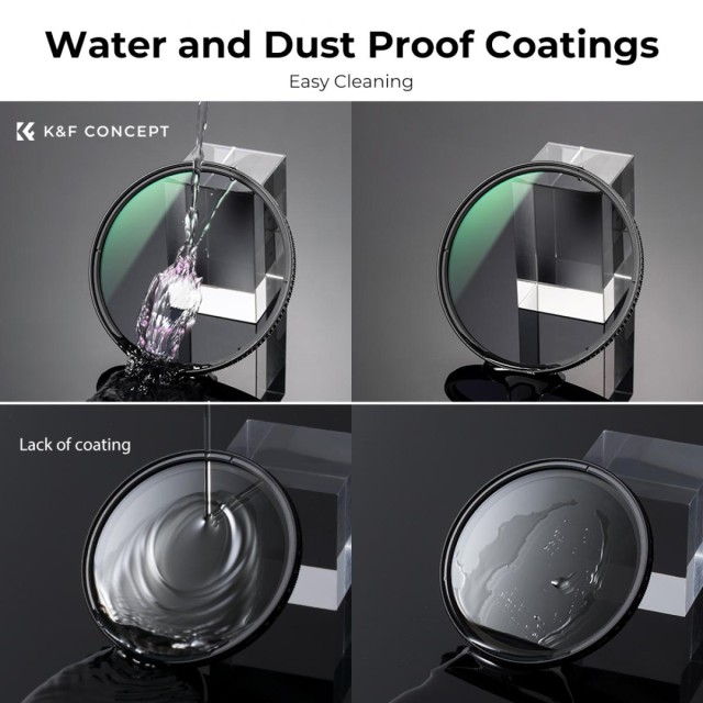 The K&F Concept 46mm XC15 Nano-X B270 CPL Filter enhances color saturation and contrast while reducing glare and reflections from non-metallic surfaces. Built with premium Japanese optical glass and a 28-layer Nano-X green coating, it delivers HD clarity with waterproof and scratch-resistant durability in an ultra-slim design.