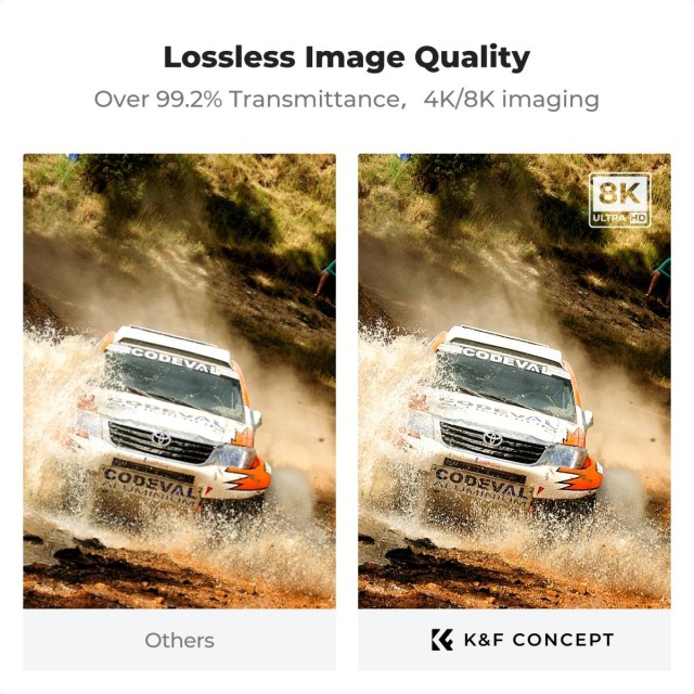 UV filter has two functions, one is to prevent CCD affected by UV ray and weakens the blue tone in images caused by UV, ensuring clarity and color. Another is to protect the lens away from shock harm, water, dust, scratches, oil, and fingerprint. KF Concept shockproof tempered UV filter is made by importing Japanese AGC glass, shockproof, waterproof, and scratch resistant.