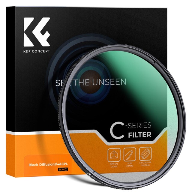 The K&F Concept 62mm Multi-functional CPL + Black Mist 1/4 Filter is designed for creators who want both optical control and atmospheric character without switching filters. The CPL (Circular Polarizer) element minimizes reflections from water, glass, and other reflective surfaces while boosting contrast and color saturation. The integrated Black Mist 1/4 diffusion subtly softens highlights, reduces excessive digital sharpness, and adds a smooth, film-like texture ideal for portraits, landscapes, and cinematic video work. Built with high-quality optical glass and a durable 62mm frame, this combination filter offers efficiency, convenience, and creative versatility for photographers seeking professional-grade results in a compact setup.
