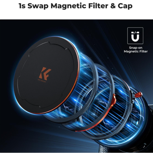 The K&F Concept 67mm Magnetic Filter Kit (Nano-X Series) is a versatile 3-filter set with CPL, ND2-32 (variable 1-5 stops), and Black Mist 1/4 for quick magnetic swaps on 67mm lenses, featuring 28-layer nano-coating for scratch/water resistance, color-neutral optics, smooth Teflon rotation, and included adapter ring, 72mm magnetic cap, and portable pouch—ideal for cinematic video and photo effects.