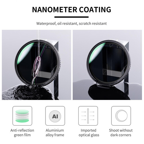* 【ND Filter Function】The Variable ND filter main function is to reduce the entry of light without affecting the overall colour balance, for long exposure and motion blur techniques in changing light.