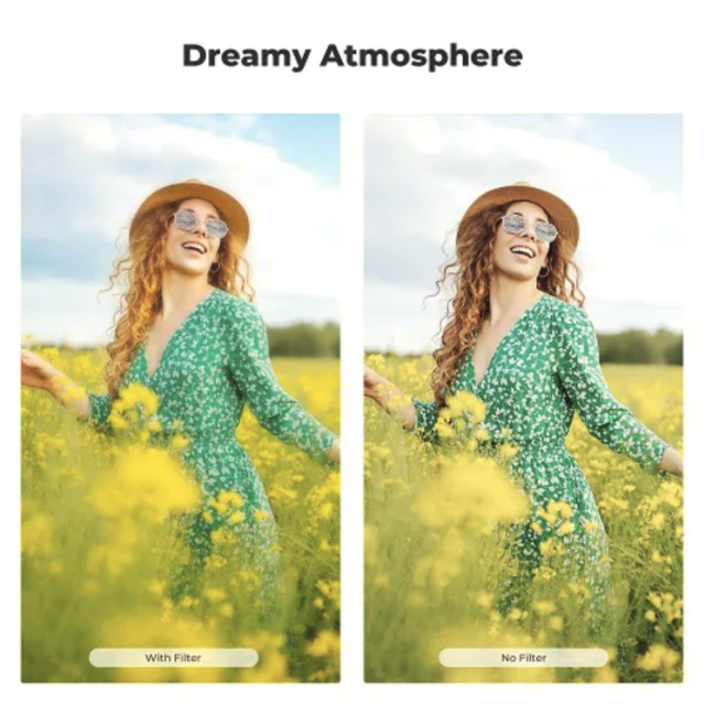 The K&F Concept 72mm 2-in-1 Black Mist 1/4 + CPL Filter combines cinematic diffusion with precise polarization control, delivering softened highlights, lifted shadows, reduced reflections, and enhanced color—all in a slim, durable, multi-coated design perfect for portraits, landscapes, and professional video work.