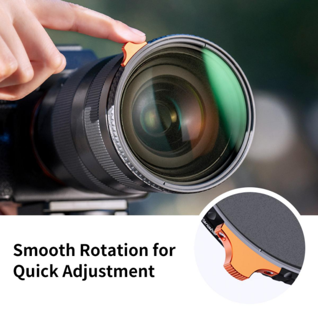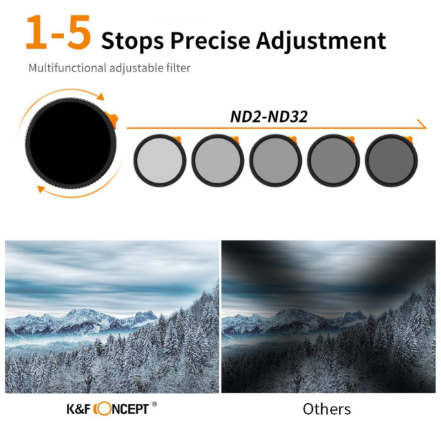 One filter has the ND & black diffusion 1/4 effect filter features, it not only can control the amount of light enter lens via adjust (1-5 stops ), but also creats cinematic dream effect for photos and video.