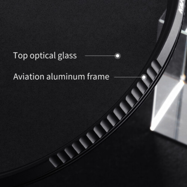 The filter is constructed out of durable aluminum and has a slim design to avoid interference with wide-angle lenses. It has a multi-coating that ensure clarity while also providing resistance to scratches. Additionally, it has knurling on the side for easier removal and attachment.