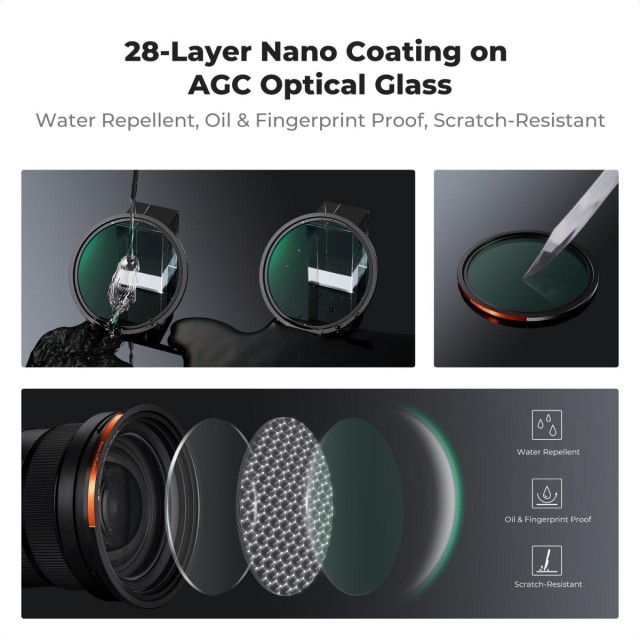 Constructed with Japanese AGC glass and protected by 28-layer nano coatings, each filter delivers maximum clarity with resistance to water, oil, scratches, fingerprints, and stains. Color-fidelity technology eliminates unwanted color casts, ensuring accurate, true-to-life results straight out of the camera. Complete with a compact, travel-ready pouch, this kit provides everything needed for landscapes, portraits, filmmaking, and everyday creative shooting.