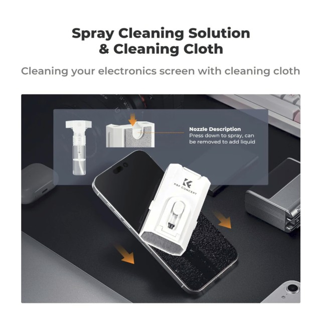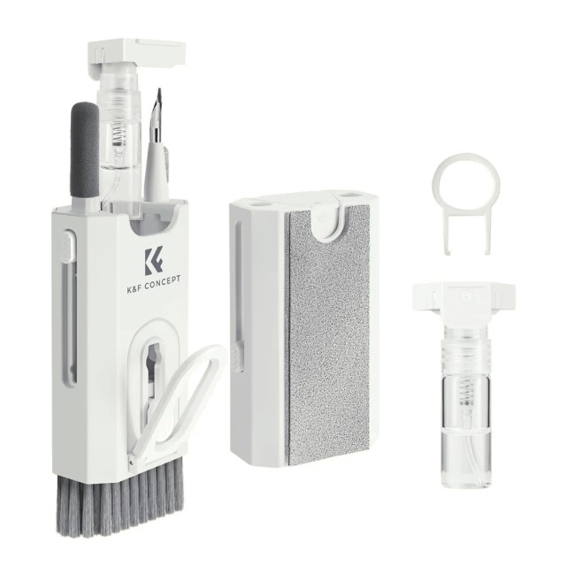 Keep your devices spotless with the K&F Concept 8-in-1 Cleaning Kit. This portable, multi-functional kit includes all the essential tools to clean keyboards, smartphones, computers, headphones, and more safely and effectively.