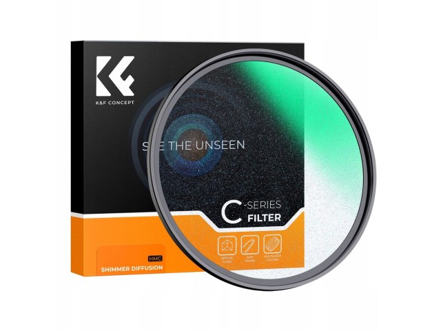 The K&F 82mm C Series Shimmer Diffusion Filter softens highlights, adds a dreamy glow, and enhances portraits by gently diffusing light while preserving detail for cinematic, romantic visuals.