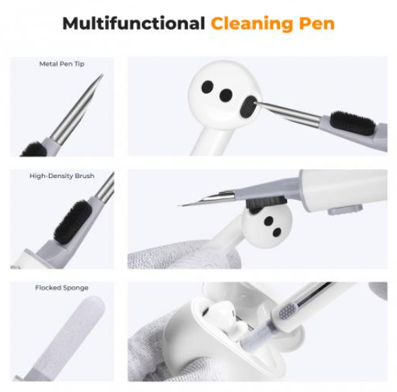 The K&F Concept Airpod Cleaner Kit is a multi-function 3-in-1 cleaning pen with soft brush, flocking sponge, memory cotton stick, adhesive pull-tab, alcohol swab, and microfiber cloth, designed for thorough Bluetooth earphone maintenance. It removes oil, dust, stains, and bacteria from surfaces, sound outlets, and compartments, restoring hygiene…