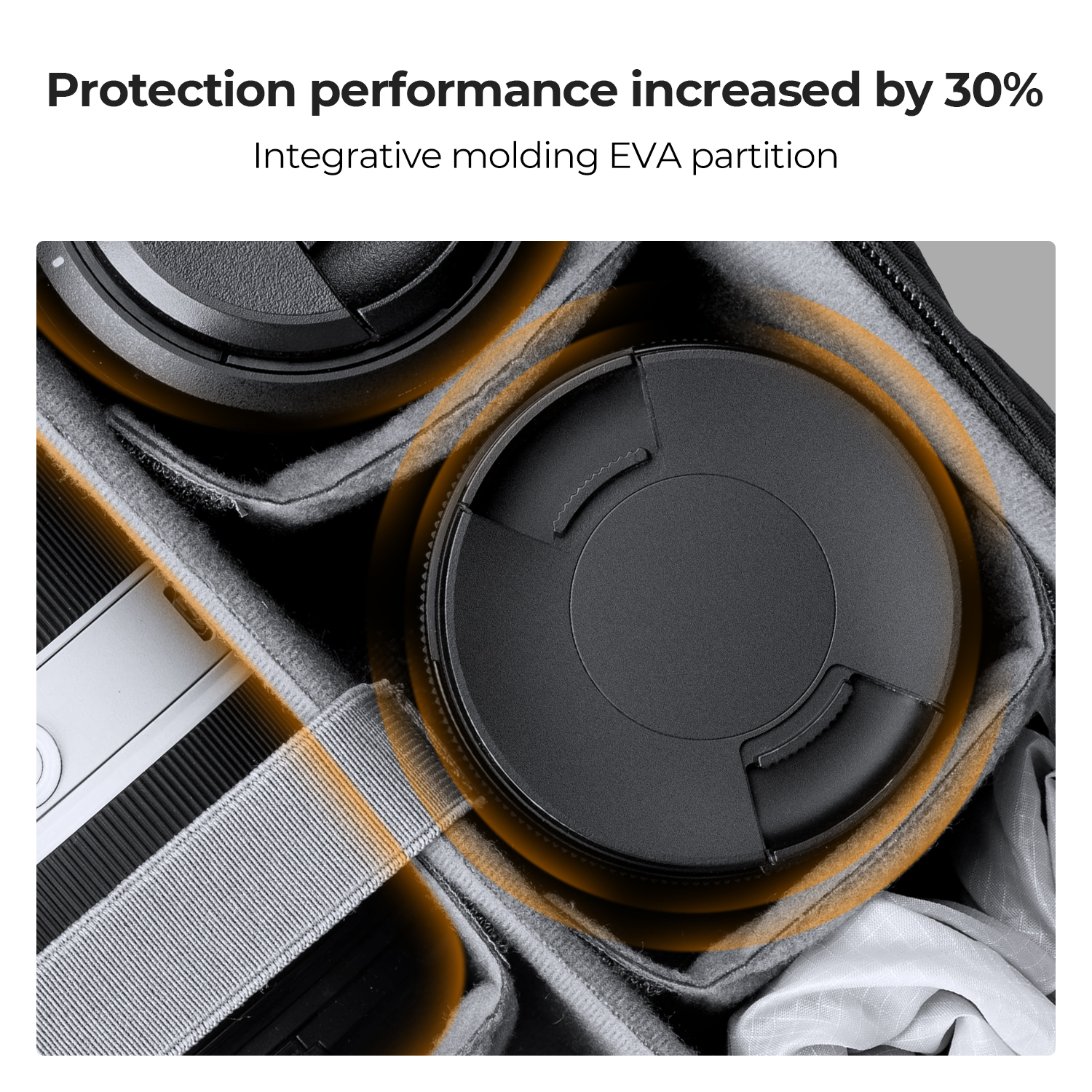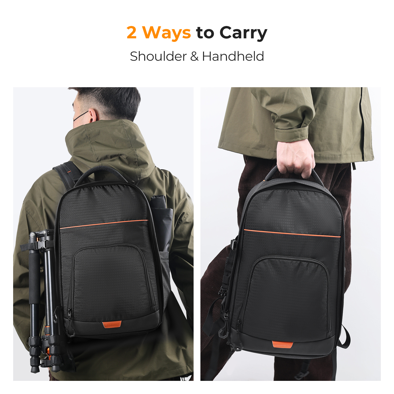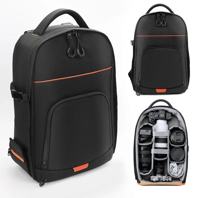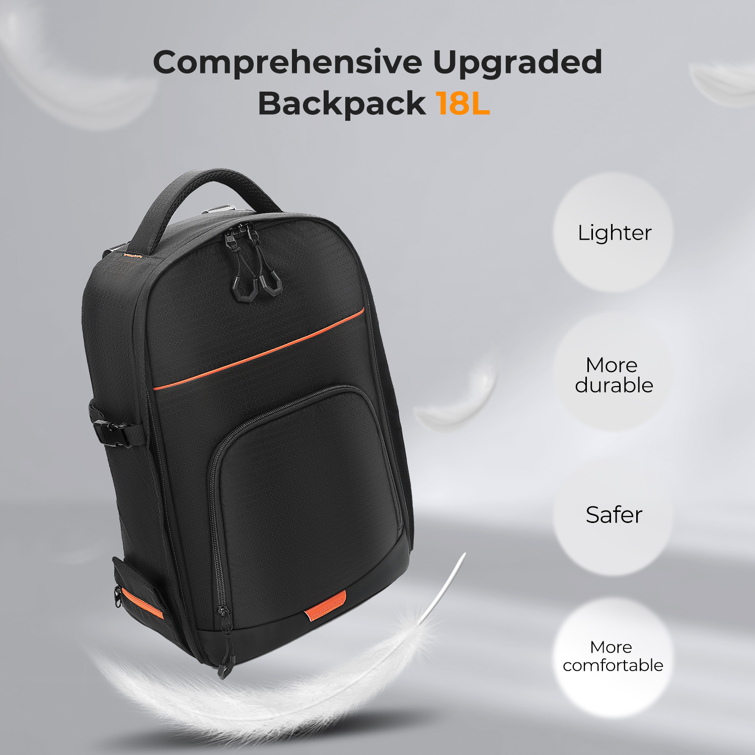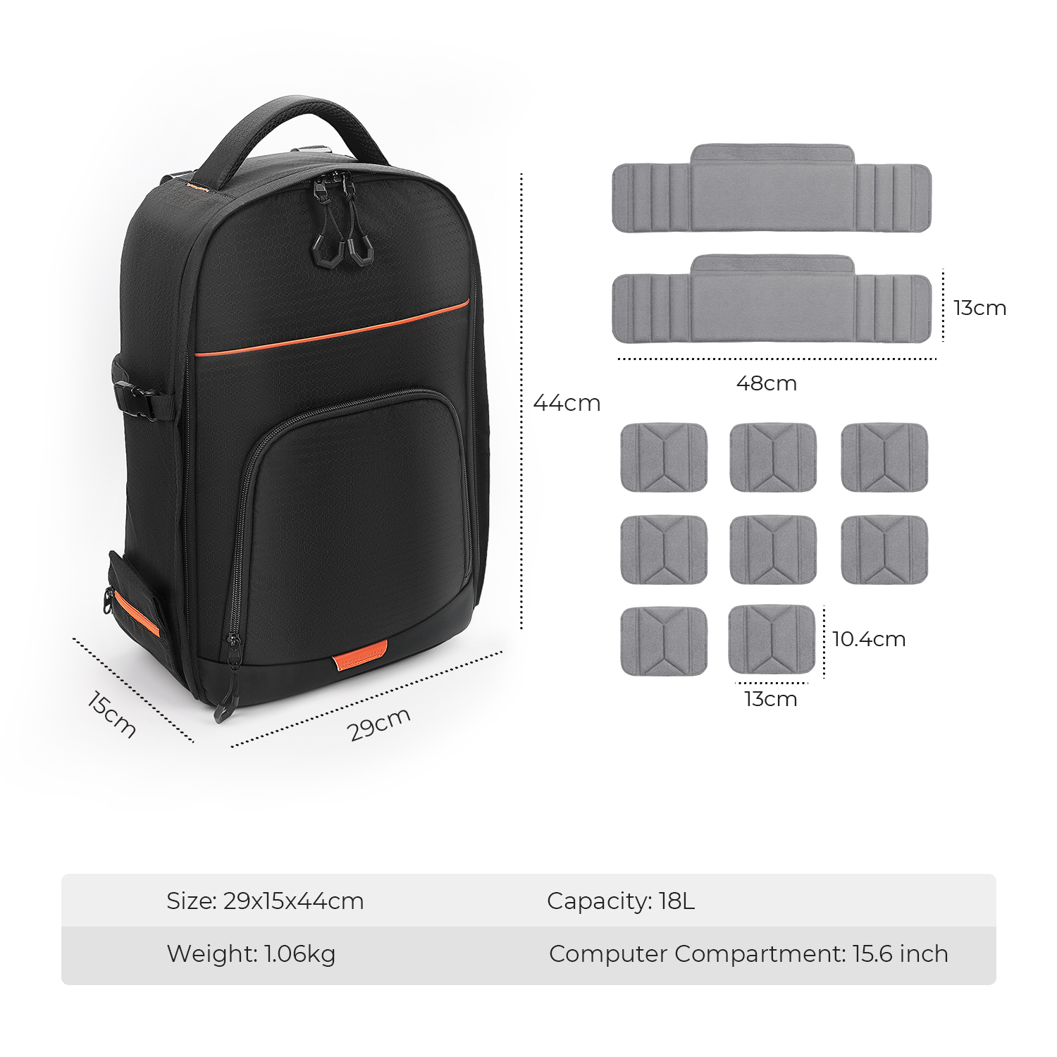 Backpack 18L. Lightweight design, taking into account the ultimate protection, safety and convenience. Front opening, better protection and anti-theft, 180° full opening, custom partition storage, layout space and equipment organization, internal items are clear at a glance, maximum convenience organization, maximum two machines and multiple lenses, meet the needs of various equipment, and can be freely DIY organized.