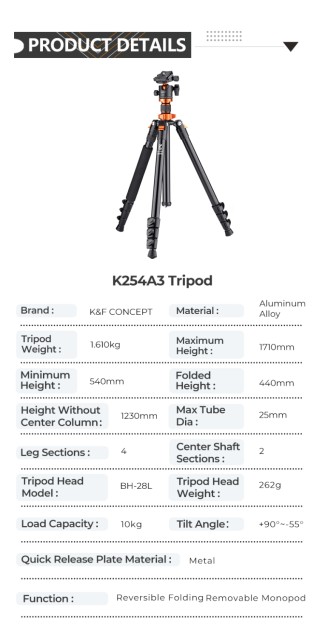 K&F Concept Ball Head Quick Release Plate DSLR Tripod Aluminum Camera Tripod for DSLR camera